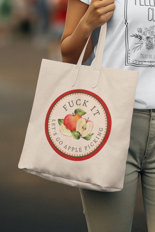 Let's Go Apple Picking - Canvas Tote Bag, 100% Cotton, Double Sided, Funny, Fall, Carry all